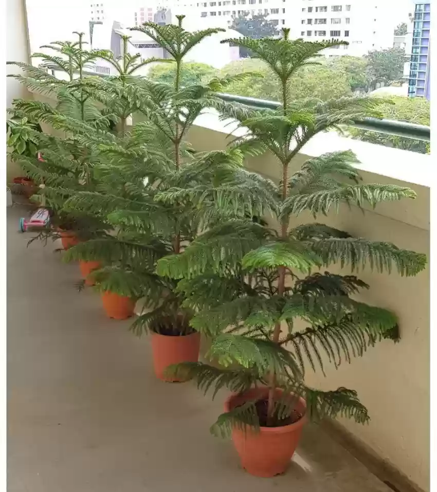The Christmas Tree (Araucaria Heterophylla), also known as Norfolk Island Pine or Jhau, is a beautiful ornamental plant with a symmetrical, evergreen structure. It is an excellent choice for both indoor and outdoor decoration, adding a festive charm to homes, gardens, and offices.