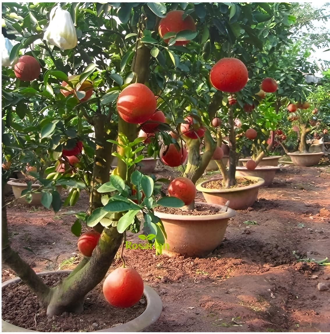 • Produces large, sweet, and tangy pomelo-like fruits with a vibrant red hue